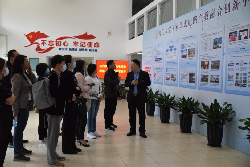 十一月是收获的季节。厦门大学作为全国首批4所建设国家集成电路产教融合创新平台高校之一,与三安光电股份有限公司共建的第三代半导体工艺分平台正如火如荼建设中。11月14号上午,三安光电股份有限公司特邀新华社、人民日报、央视财经等14家国内主流媒体代表走进学校,考察国家集成电路产教融合创新平台,并为平台建设发展提出了宝贵建议。三安光电股份有限公司总经办主任郑勇、副主任肖珊春,学院党委书记吴国瑛、院长陈忠、副院长蔡励元、微电子与集成电路系副主任周剑扬、李澄等参加。